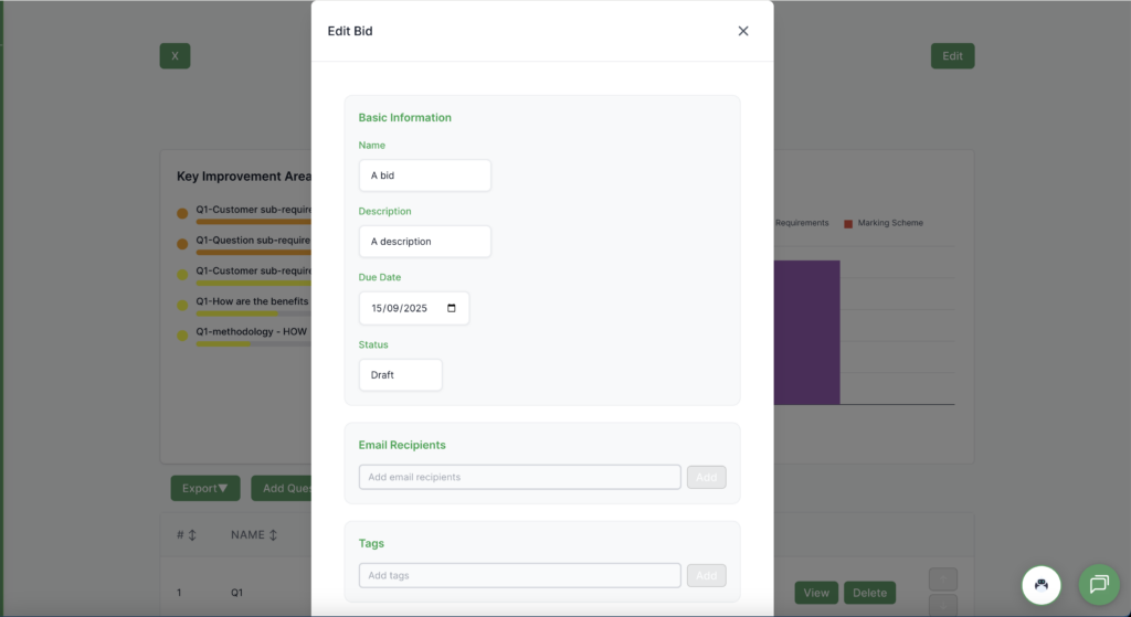 2. Use Tags: Add tags to organise bids (e.g., “2024”, “Client X”, “Won”)