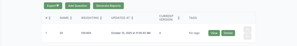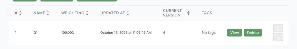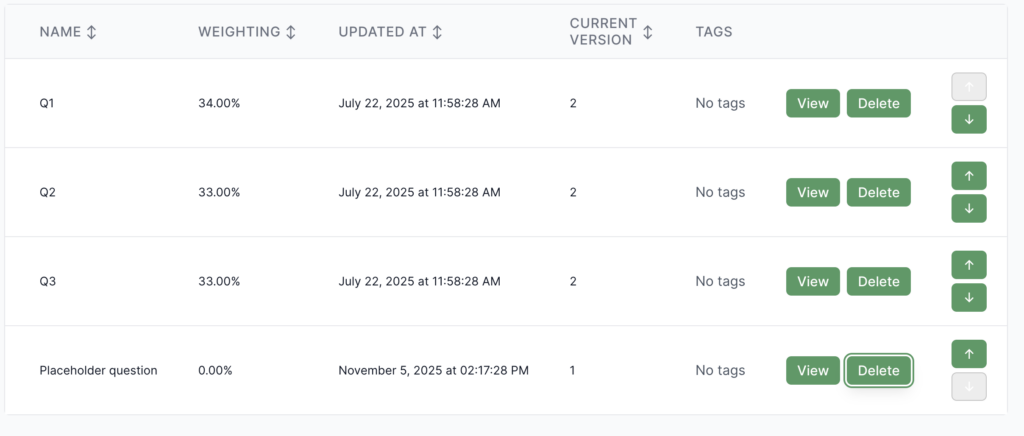 • Click on the up arrow to move the question higher in the order or down to go lower in the order.