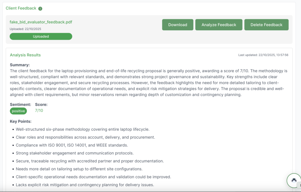• Add notes, ask clarifying questions, or provide feedback directly on the bid.