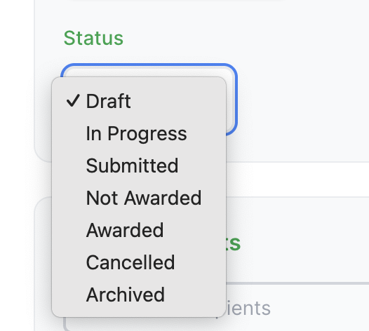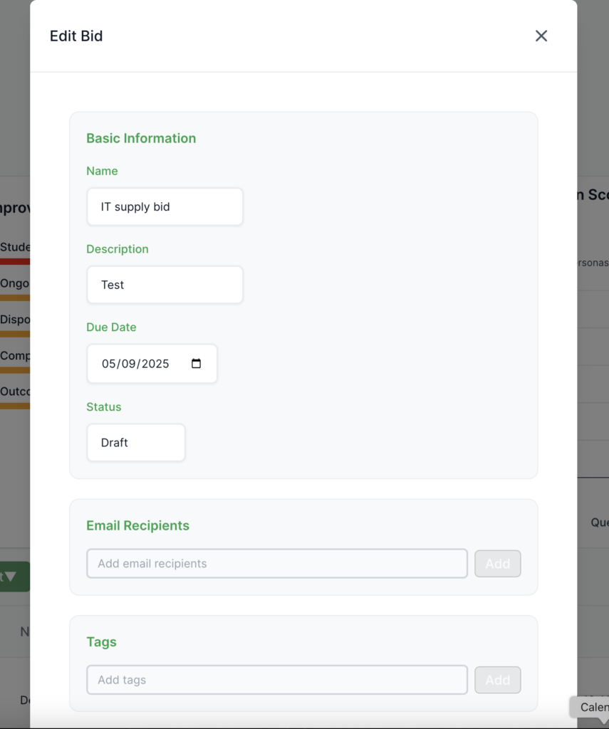 • Status: the current status of the bid (e.g., Draft, Submitted).