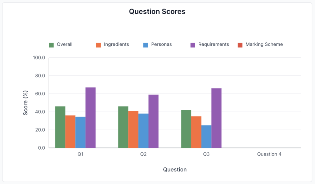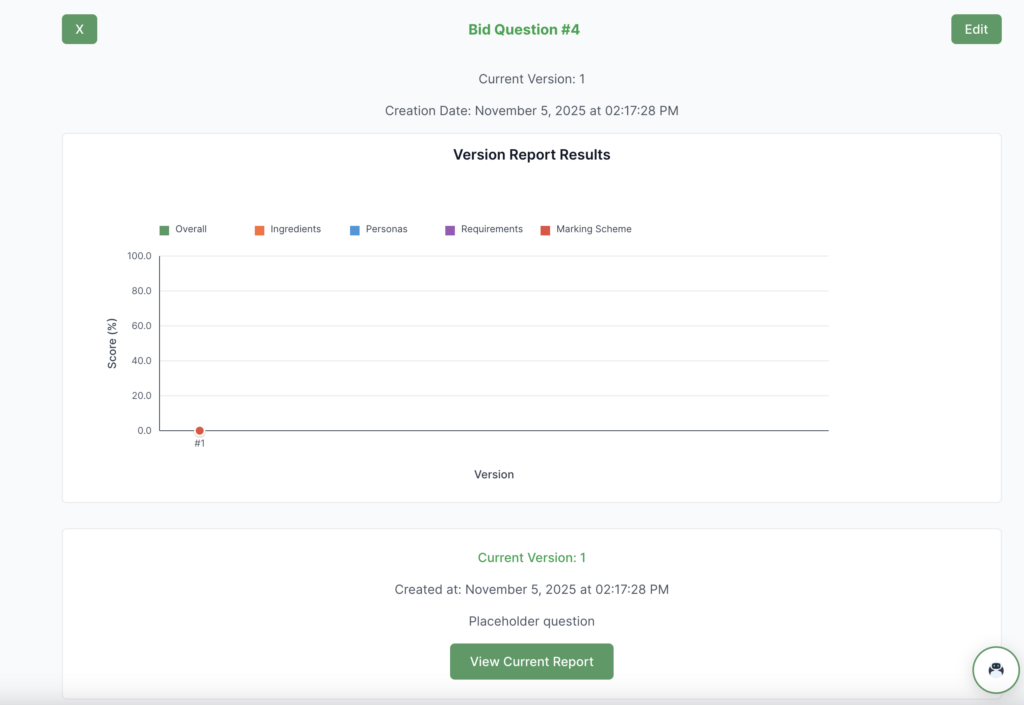 This chart on the bid page will show the scores of each of your questions as well as the breakdown per report type.