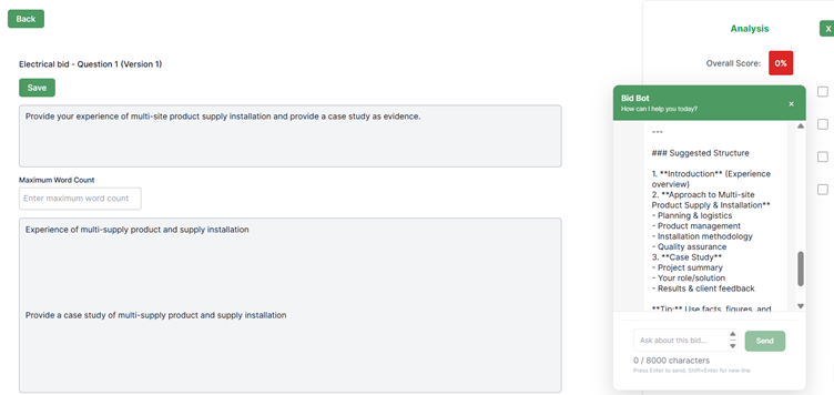 Click on the Bid Bot logo in the bottom right hand side and input your text into the AI helper.