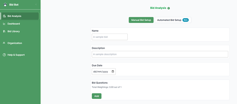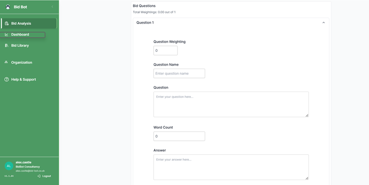 Once you have clicked “Generate Analysis” and saved to the Bid Library by ticking the checkbox, you will automatically be redirected to the Bid Page, as shown in the image below.