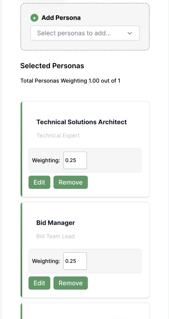 Persona Weightings: Personas can have different importance (high/medium/low), affecting how scores are calculated.