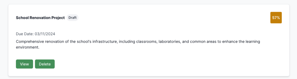 - Bid Information Table: Status, tags, dates, scores, contributors, overall score