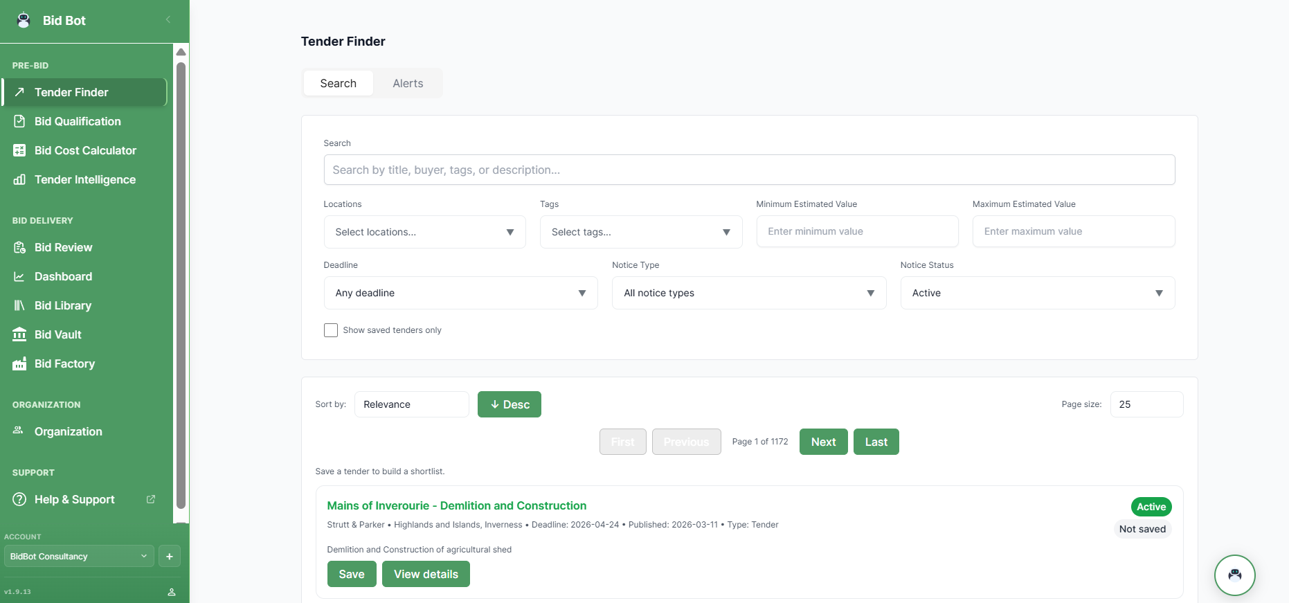 Tender Finder is currently free and can be used before you commit to a trial. Find and get alerts on relevant contracts across government portals, saving hours of manual searching. Additional portals can be added on request once you’re set up, keeping you informed of opportunities that match your criteria instantly.